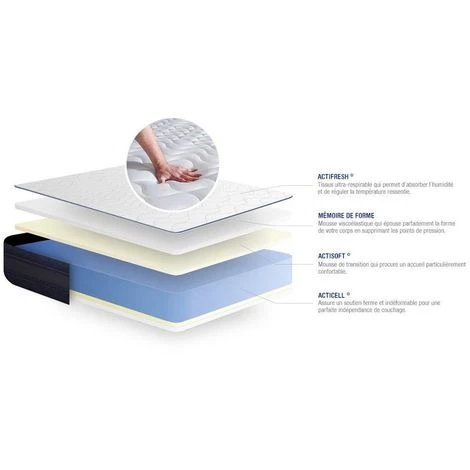L’avis de notre expert: Le matelas Actimemo TECH est un matelas haut de gamme de la marque ACTISOM. Il dispose d’une maxi épaisseur de 24cm. Conçu à base de mousse à mémoire de forme, sur les deux faces été/hiver, il allège les points de pressions. Doté d’une mousse ActiSoft, il procure un acueil particulièrement confortable. L’excellente indépendance de couchage assure un sommeil réparateur à toute épreuve.