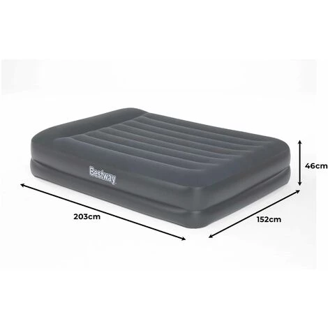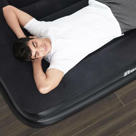 Matelas gonflable facile à utiliser. Pour le gonfler ou le dégonfler, il suffit de brancher et activer la pompe électrique 220-240V intégrée. Elle permet de gonfler le matelas en seulement 4 minutes. La structure durable en Tritech permet de perdre un minimum d’air quand le matelas est utilisé. Elle ne se déforme tout en gardant un confort ergonomique. La structure est aussi équipée de renforts intérieurs de forme « l-beam » pour garder sa forme et rester ferme. Pour encore plus de confort, un oreiller est intégré. Emportez le partout avec vous grâce à son sac de transport. Si besoin, des rustines de réparation sont disponibles.