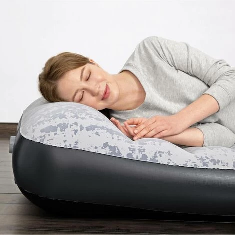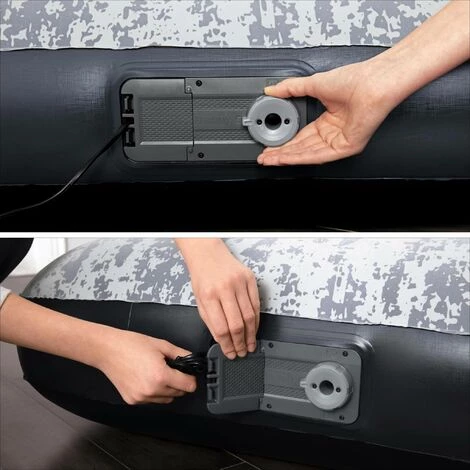 Matelas gonflable facile à utiliser. Pour le gonfler ou le dégonfler, il suffit de brancher et activer la pompe électrique 220-240V intégrée. Elle permet de gonfler le matelas en seulement 2 minutes. La structure durable en Tritech permet de perdre un minimum d’air quand le matelas est utilisé. Elle ne se déforme tout en gardant un confort ergonomique. Pour encore plus de confort, un oreiller est intégré. La surface de couchage est doté d’un imprimé camouflage. Emportez le partout avec vous grâce à son sac de transport. Si besoin, des rustines de réparation sont disponibles.