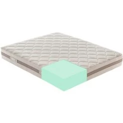 Mousse Aertech plus H: 11 cm, densité 21 Kg/m3, Housse supérieure et inférieure matelassée fixe composée de Tissu jacquard (70% polyester, 30% polypropylène), Rembourrage Thermoflex B 450 g/m2 (60% Coton, 40% polyester) et Bordage Tissu jacquard (70% polyester, 30% polypropylène). Confort : Soutien ferme, accueil semi ferme – Hauteur 13.5 cm – GARANTIE 5 ANS.