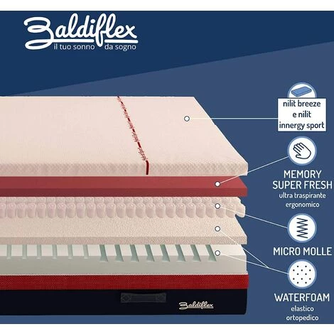 1er couche: 5 cm Mousse à Memoire de forme Super Fresh densité 55/60 kg/m3. Ultra-respirante