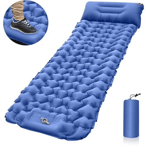 Pompe Ă pied intĂ©grĂ©e innovante : le coussin de camping prĂ©sente un nouveau design avec une pompe Ă pied intĂ©grĂ©e qui vous permet de gonfler complètement le matelas de couchage en 1 Ă 2 minutes (130 fois avec la pompe Ă pied). C’est pratique et facile. non NĂ©cessite de souffler dans la bouche ou de porter une pompe sĂ©parĂ©e