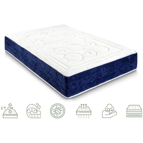 Hauteur totale du matelas 27 cm, emballée sous vide, récupération en 24 heures.