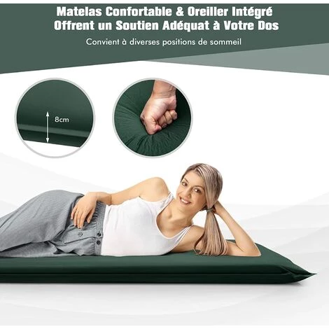 - 【Matelas de couchage multifonctionnel : 】le matelas de couchage de 190 x 72 x 8 cm peut accueillir un adulte pour dormir dessus et s’adapter à une position de sommeil confortable, parfait pour le camping, les voyages ou la randonnée pour éviter d’avoir froid du contact avec le sol humide, ou comme matelas de rechange pour votre lit de camping.
