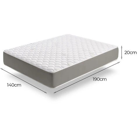 MATELAS DE LUXE – Matelas anatomique et respirant 140x190h20 cm, adapté au lit double français – Structure interne en mousse à mémoire de forme de 2 cm et polyuréthane à capacité portante moyenne / rigide.