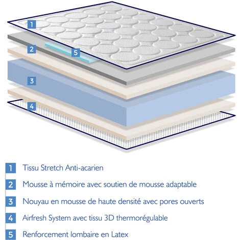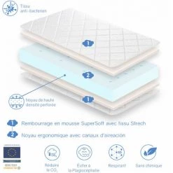 - Type: Matelas mousse, Matelas mémoire de forme, Matelas latex