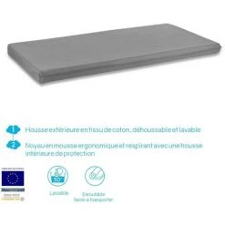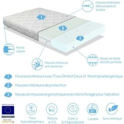 - Matelas déhoussable. Il a deux housses. La housse extérieure est faite de tissu stretch souple et élastique. La housse intérieure est en tissu multi élastique de protection pour faciliter le dégraissage et protéger le noyau de notre enfant.