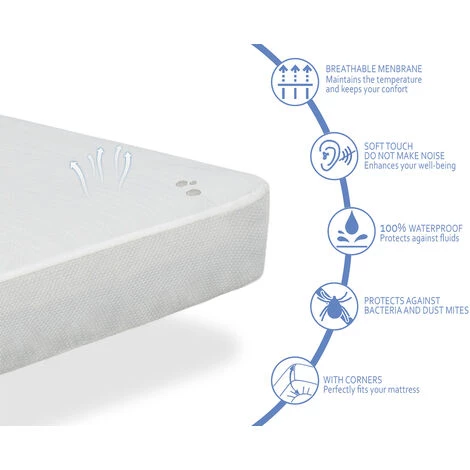Protège-matelas absorbant et silencieux. Imperméable et hautement respirant : la membrane en polyuréthane bloque parfaitement tous les liquides, la transpiration, l’urine et les fluides corporels, laissant passer l’air.