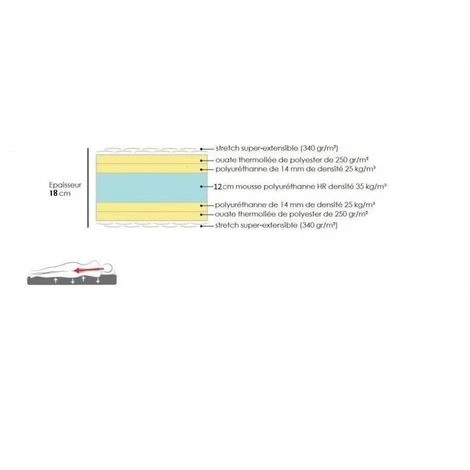 – Ãme 12 cm de mousse polyuréthane haute résilience de densité 35 kg/m3.