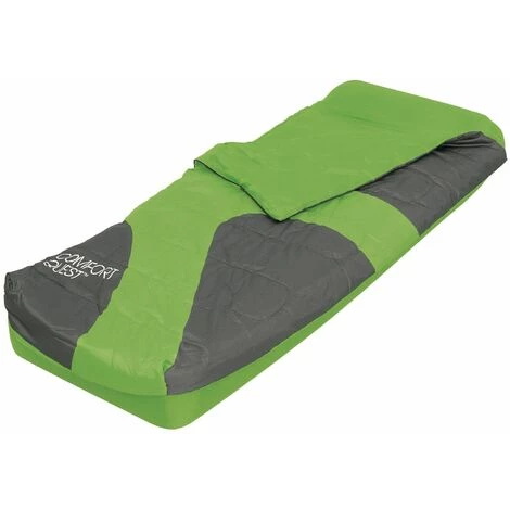 L’ensemble Bestway Aslepa Airbed est un matelas gonflable pour un repos bien mérité lors de nos sorties à la campagne et/ou en plein air. Cet ensemble comprend un matelas de camping gonflable et un sac de couchage surbaissé. En plus de sa structure robuste, il possède une surface floquée pour un plus grand confort. Il est également livré avec un sac de transport. Il est fabriqué en polyester 190T avec un remplissage de fibres de 200 g/m2. Il est disponible en trois couleurs : bleu, vert et jaune. Mesurant 185x76x22 cm, l’ensemble de matelas gonflables Bestway Aslepa est un nouveau produit avec une garantie du fabricant, Bestway. Caractéristiques : – Ensemble matelas gonflable Bestway Aslepa Airbed. – Matelas gonflable. – Individuel. – Utilisation à l’intérieur ou à l’extérieur. – Surface confortable. – Forte structure de poutres en spirale. – Gonfleur non compris. – Abaissement du sac de couchage. – La température varie de 12 à 18ºC. – Fabriqué en polyester 190T. – 200 g/m2 de fibres creuses de remplissage. – Sac de transport. – Trois couleurs assorties. – Taille : 185x76x22 cm. – Valve d’inflation et de déflation rapide. – Patch de réparation. – Garantie du fabricant, Bestway.