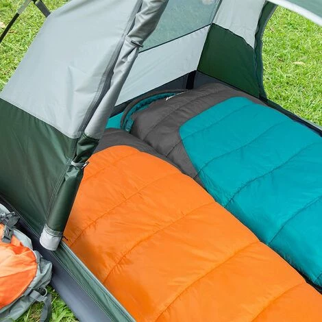 ăMatĂ©riaux de haute qualitĂ©ăNous adoptons le polyester indĂ©chirable 210T comme matĂ©riau de surface et le coton dĂ©sossĂ© par pulvĂ©risation 350gsm comme rembourrage. Il est assez doux, doux pour la peau et impermĂ©able, Ă©galement durable pour rĂ©sister aux dommages causĂ©s par les pierres, les branches et autres Ă©lĂ©ments naturels.