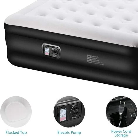 Installation rapide : Le matelas pneumatique , dotĂ© d’une pompe Ă©lectrique intĂ©grĂ©e facile Ă utiliser, se gonfle rapidement pour atteindre sa pleine fermetĂ© en 4 Ă 5 minutes environ. Grace Ă la conception de la molette de contr?le, il est Ă©galement pratique de dĂ©gonfler le matelas pneumatique pour faciliter le stockage et le transport.