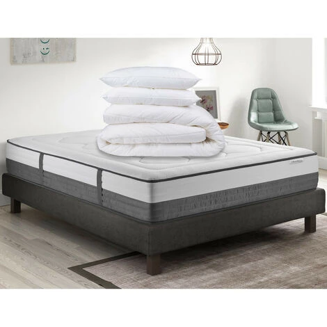 • Composition du pack : Matelas + sommier + couette + 2 oreillers