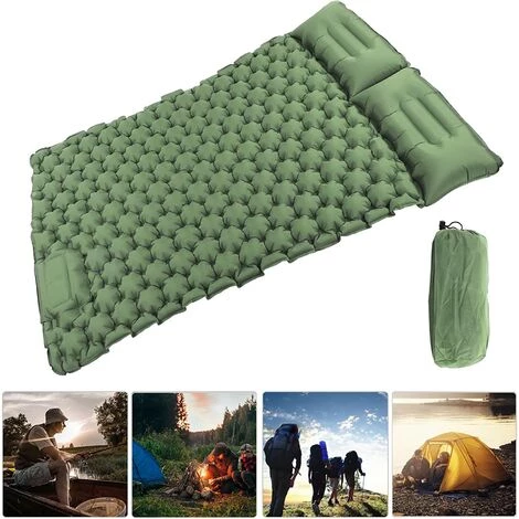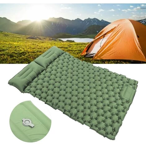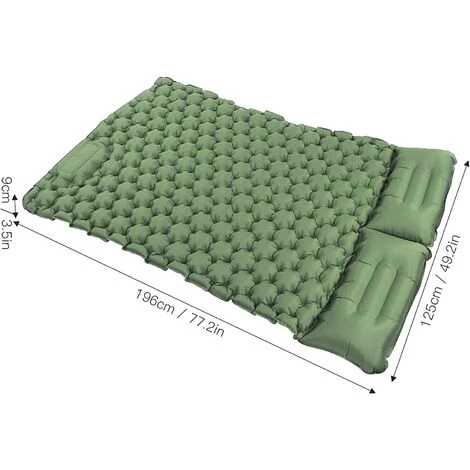 【MULTIFONCTION】Coussin double auto-gonflant polyvalent, il peut être utilisé comme coussin et matelas de couchage en camping, comme lit lors de voyages d’affaires, comme coussin dans la nature et dans les parcs, et pause déjeuner au bureau. Il peut vous éloigner des sols froids, des sols humides et de la pierre dure. Parfait pour les tapis de camping en plein air, les voyages, la conduite autonome, la pause déjeuner, etc.