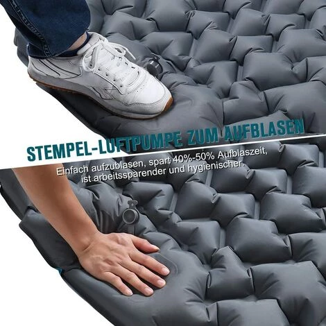 Pompe Ă pied intĂ©grĂ©e avancĂ©e : le tapis de camping compact est livrĂ© avec une pompe Ă pied intĂ©grĂ©e, vous permettant de gonfler complĂštement le matelas de couchage en 1 minute simplement en tapant du pied, ce qui vous fera Ă©conomiser 40 % Ă 50 % de votre temps de gonflage. . C’est plus pratique, plus Ă©conomique et plus propre que de souffler avec la bouche ou d’appuyer avec les mains. De plus, il est Ă©galement livrĂ© avec un oreiller pour vous rendre plus dĂ©tendu lorsque vous dormez