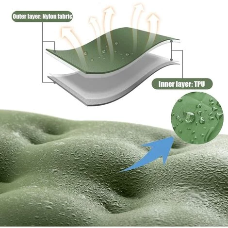 Excellente qualité : 196 x 68 x 10 cm. Ce matelas de camping est fabriqué en nylon 40d de haute qualité et en matériau TPU, il est imperméable et résistant aux perforations, il peut supporter jusqu’à 440 lb/200 kg lorsqu’il est gonflé. De plus, il est facile à nettoyer, si la surface devient poussiéreuse ou sale, tamponnez-la légèrement.