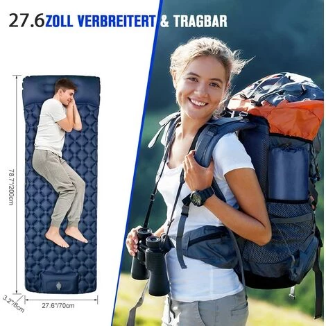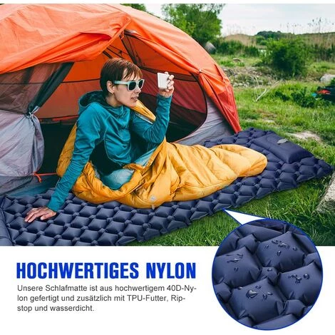 Repose-pieds intégré innovant Pompe : Le tapis de camping est nouvellement conçu avec une pompe à pied intégrée, vous permettant de gonfler complètement le matelas de sol en 1 à 2 minutes (130 fois avec la pompe à pied). C’est pratique et facile. Aucun embout buccal ou pompe séparée requis