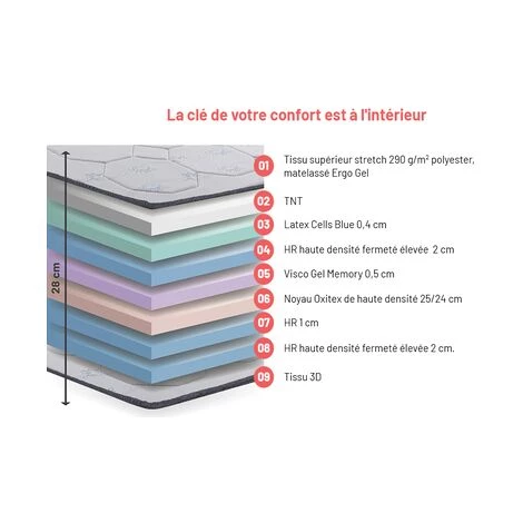 Sa fermeté est de 5 points sur 6 et son ÉPAISSEUR est de 25 cm.