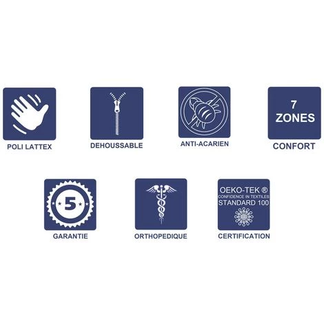 Plate-bande: Tissu Hyper RESPIRANT matelassĂ© avec de la ouate polyester Ă„me noyau : bloc de 15 cm de Mousse HAUTE RESILIENCE Poli Lattex derniĂ©re gĂ©nĂ©ration IndĂ©formable La structure du matelas est divisĂ©e en 7 incroyables zones de confort qui s’adaptent Ă tous types de morphologies et aident Ă libĂ©rer les tensions musculaires pour soulager les maux de dos provoquĂ©s par de mauvaises postures au cours de la journĂ©e