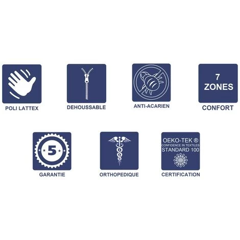 Plate-bande: Tissu Hyper RESPIRANT matelassĂ© avec de la ouate polyester Ă„me noyau : bloc de 15 cm de Mousse HAUTE RESILIENCE Poli Lattex derniĂ©re gĂ©nĂ©ration IndĂ©formable La structure du matelas est divisĂ©e en 7 incroyables zones de confort qui s’adaptent Ă tous types de morphologies et aident Ă libĂ©rer les tensions musculaires pour soulager les maux de dos provoquĂ©s par de mauvaises postures au cours de la journĂ©e