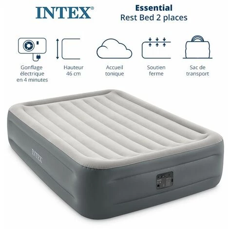 Dimensions: 203 x 152 x 46 cmPoids: 7.5kgPourvu de la technologie Fiber-TechFlocage doux sur le dessusSac de transport inclusGonfleur électrique intégré pour gonfler et dégonfler rapidement votre matelas