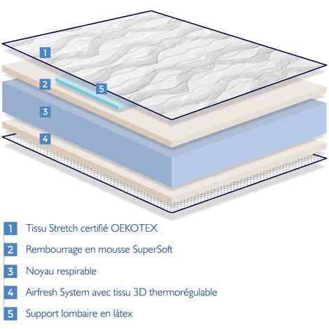- Type: Matelas mousse, Matelas latex