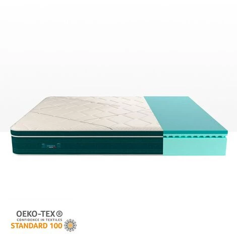 Grâce à son épaisseur de 28 cm, ce matelas est un vrai plaisir pour le dos et les articulations : sa composition, avec deux couches de mousse mémoire et une de gel mémoire, a été étudiée pour donner un confort inégalé au dos et également supporter le poids du corps en évitant la formation de creux gênants. Indéformable et extrêmement confortable, le matelas, en contact direct avec le corps, possède un surmatelas intégré et une couche de gel mémoire thermorégulateur qui répartit uniformément les contraintes et procure une agréable sensation de fraîcheur sur la peau lorsque vous dormez. La dalle de mousse de pierre de 4,5 cm d’épaisseur insérée dans le surmatelas ajoute un niveau supplémentaire de bien-être au repos. Grâce à sa structure innovante, la mousse réagit parfaitement à la pression du corps et favorise le passage de l’air, rendant le matelas hautement respirant. La partie inférieure du matelas est composée d’une plaque en mousse à mémoire de forme qui accueille confortablement le corps, offrant un soutien uniforme à chaque point de pression. La doublure en pur coton et microfibre est hautement respirante, hypoallergénique et anti-acariens, et facilite également la circulation de l’air et la dispersion de l’humidité dégagée par le corps pendant le sommeil, évitant également la prolifération des bactéries et des acariens, assurant ainsi un repos paisible, sûr et hygiénique.