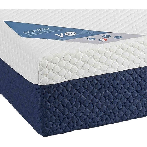 Matelas SOMEO V70 en mousse haute résilience pour une excellente durée de vie, recouvert d’un couchage de 6 cm en mousse à mémoire de forme pour un confort moelleux et enveloppant procurant une sensation d’apesanteur propice au relachement des muscles. Le sommeil est ainsi davantage régénérateur.