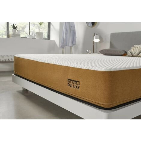 Nouvelle mousse mémoire Matris Deluxe : Nouveau ! 4 cm de mousse à mémoire de forme Matris Deluxe, une matière exclusive qui soulage la pression et s’adapte point par point à votre corps, la sensation de bien-être est totale. Il récupère rapidement ce qui facilite les mouvements et améliore la qualité du repos. Il n’est pas sensible aux changements de température et sa configuration permet une ventilation permanente et une plus grande hygiène.