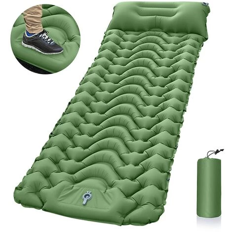 Tapis de camping ultralĂ©ger avec oreiller, matelas pneumatique, lit d’extĂ©rieur, impermĂ©able, adaptĂ© pour la randonnĂ©e et la randonnĂ©e