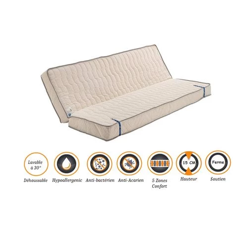 · Épaisseur du matelas : +/- 15 cm.