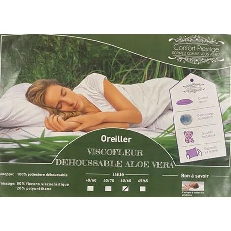 Lot de deux Oreillers avec garnissage 80 % Flocons memoire de forme visco elastique – Dehoussable – Housse Lavable à 40° – Tissu a l’Aloe Vera , il offre un soutien confortable a votre tête, votre cou et vos epaules et offre un confort maximal pour votre sommeil – Hypoallergenique, anti acariens et antibacterienne offre un toucher tres doux – TISSUS CERTIFIES : Systeme de Qualite Certifie Oeko-tex 100 , Certipur teste contre les substances nocives. Certification ISO 9001