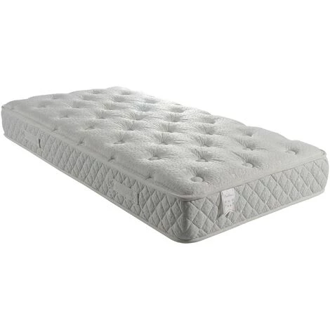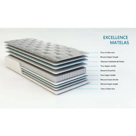 · Technologie matelas : Face ete + ame en Mousse Poli Lattex Derniere Generation + Ressorts Ensaches ( 683 pour un matelas140 ) Indeformable Tres Haute Resilience – Mousse a Memoire de Forme Tres Haute Densite 80 Kg/m3 » Massante »