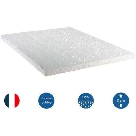- Coeur 100% latex (densité 83 kg/m³, épaisseur 7 cm).