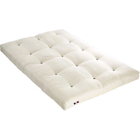 Matelas futon composé de 4 couches traditionnelles de ouate un coeur en latex de 3 cm pour un bon confort, équipé d’une housse traitée téflon anti-tâches. Ce matelas s’adapte aux structures futon, aux lits, sommiers tapissiers ou cadres à lattes….