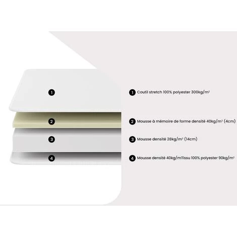 Matelas 18cm: 14cm de mousse de densité 28kg/m3