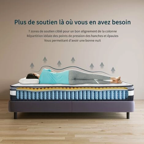 - ⭐【VESGANTTI SYSTEME DE CONFORT】Vesgantti matelas vous offre 7 zone de confort. il est composé par les mousse de message et les ressorts à poche en acier inoxydable de haute qualité, chaque ressort fonctionne de manière indépendante, fournit un support complet et moyen pour 7 zones de votre corps (pieds, jambes, hanches, reins, épaules, cou, tête). Il vous aide à ajuster et à corriger votre posture de sommeil.