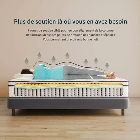 - ⭐【VESGANTTI SYSTEME DE CONFORT】Vesgantti matelas vous offre 7 zone de confort. il est composé par les mousse de message et les ressorts à poche en acier inoxydable de haute qualité, chaque ressort fonctionne de manière indépendante, fournit un support complet et moyen pour 7 zones de votre corps (pieds, jambes, hanches, reins, épaules, cou, tête). EXPEDIE PAR GLS DE FRACE ET LIVRE DANS UNE SEMAINE