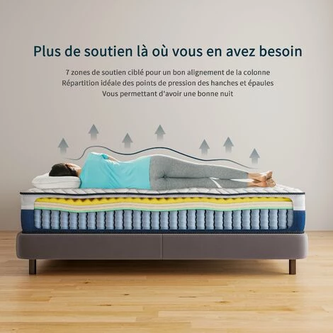 - ⭐【7 ZONE DE CONFORT】 Vesgantti matelas est composé par les ressorts à poche en acier inoxydable de haute qualité, chaque ressort fonctionne de manière indépendante, fournit un support complet et moyen pour 7 zones de votre corps (pieds, jambes, hanches, reins, épaules, cou, tête). Il vous aide à ajuster et à corriger votre posture de sommeil.
